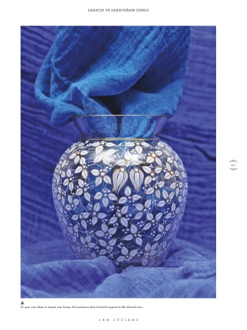 SANATIN VE SANATKÂRIN İZİNDE 297 24 ayar cam altını ve emaye cam boyası ile hazırlanan altın kontürlü yaprak ve lâle desenli vazo. C A M S Ü SLEME