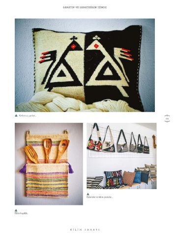 SANATIN VE SANATKÂRIN İZİNDE Kırlent ve yünler... 335 Kırlentler ve kilim çantalar... Kilim kaşıklık. KİLİM S ANA TI