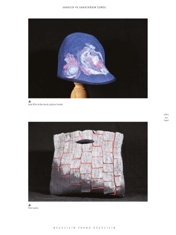 SANATIN VE SANATKÂRIN İZİNDE İpek lifler kullanılarak çalışılan kasket. 353 Keçe çanta. KE ÇE CİLİK - TEP ME KE ÇE CİLİK