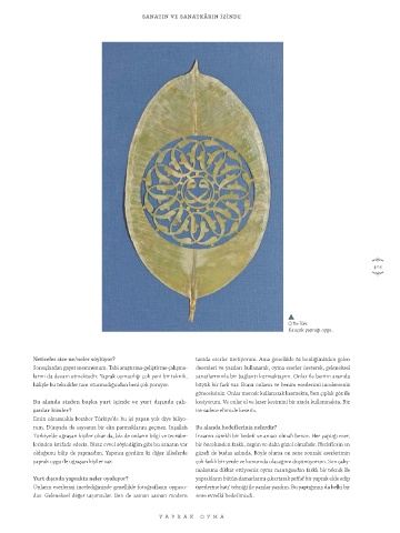 larım da devam etmektedir. Yaprak oymacılığı çok yeni bir teknik, sanatlarımızla bir bağlantı kurmaktayım. Onlar ile benim aramda
