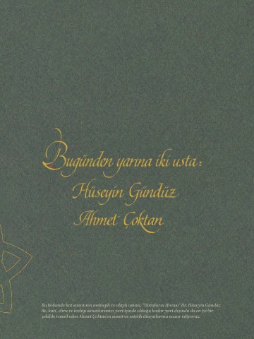 Bu bölümde hat sanatının mektepli ve alaylı ustası, “Hocaların Hocası” Dr. Hüseyin Gündüz