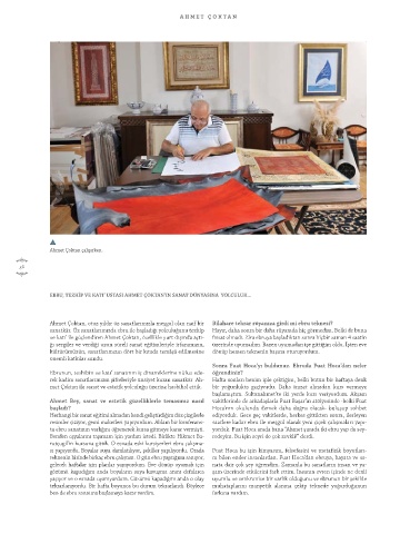ta ebru sanatının varlığını öğrenerek kursa gitmeye karar vermişti. yorduk. Fuat Hoca arada bana “Ahmet şurada iki ebru yap da sey-