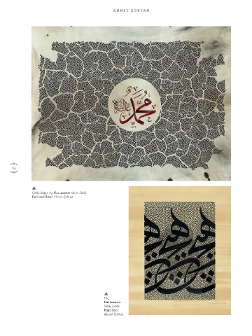 AHME T Ç OKT AN 64 Çölde doğan Ay. Hat tasarım Adem Sakal Deri üzeri katı‘: Ahmet Çoktan Hiç. Hat tasarım: Savaş Çevik Kâğıt katı‘: Ahmet Çoktan