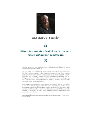 Çalışmalarını İstanbul’da sürdürmekte olan Hattat Mahmut Şahin, evli ve beş ço-