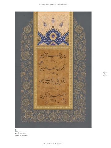 SANATIN VE SANATKÂRIN İZİNDE 89 Ta‘lik şiir. Hat: Hulusi Efendi Tezhip: Faruk Taşkale TE ZHİP S ANA TI
