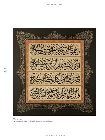 F ARUK T A ŞK ALE 94 Celî Sülüs Levha. Hat: Nazif Efendi. Tezhip: Faruk Taşkale (İrvin Cemil Shick Koleksiyonu). TE ZHİP S ANA TI